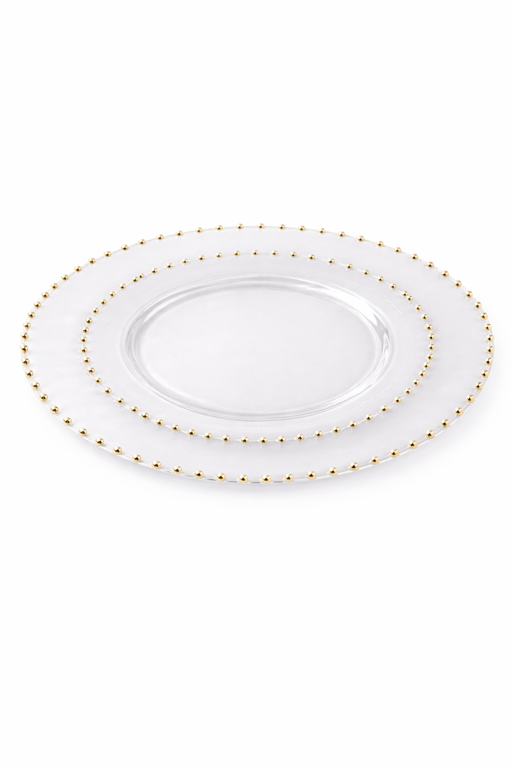 צלחת 7+10 פנינים סט 8+8 שקוף עם פס זהב 12 סט בקרטון