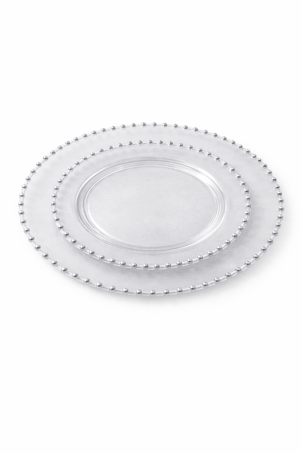 / צלחת 7+10 פנינים סט 8+8 שקוף פס כסף12 סט בקרטון